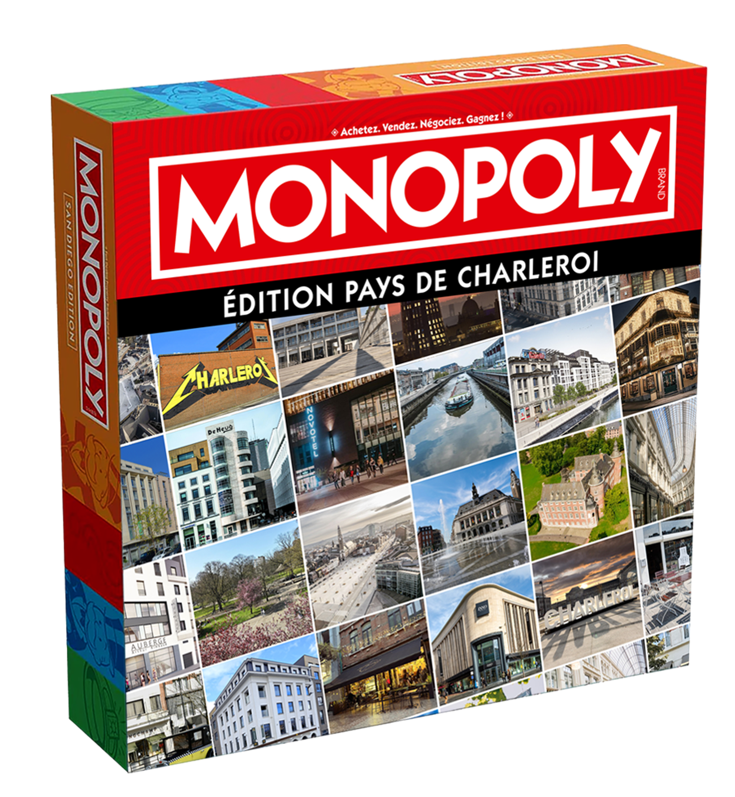La boîte, le plateau, les cartes, les billets : chaque détail rend hommage à Charleroi.